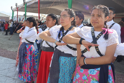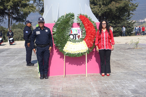 Acompañada de autoridades auxiliares, funcionarios municipales, estatales, así como una gran afluencia de pobladores del lugar y de todas las comunidades, Lugo Vargas accionó el mecanismo que eleva el lienzo tricolor, para lucir imponente en el asta que mide 52 metros y se yergue a más de 2800 metros sobre el nivel del mar.