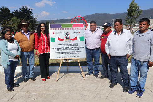 Por parte de la comunidad, Jonathan Becerril Ventura delegado municipal y Luis Velázquez Estrada comisariado ejidal expresaron su agradecimiento a la maestra Sinaí Lugo por dar una obra de esta magnitud que además de reconocer la labor de los habitantes de Santa Ana Jilotzingo, reafirma la identidad de Otzolotepec.