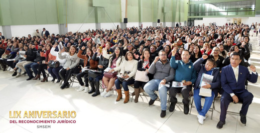 Jenaro Martínez Reyes, Secretario General, encabezó la conmemoración del LIX Aniversario del Reconocimiento Jurídico del SMSEM, en el histórico Auditorio “Prof. Agripín García Estrada”, acompañado por más de 4 mil delegadas, delegados y representantes sindicales.